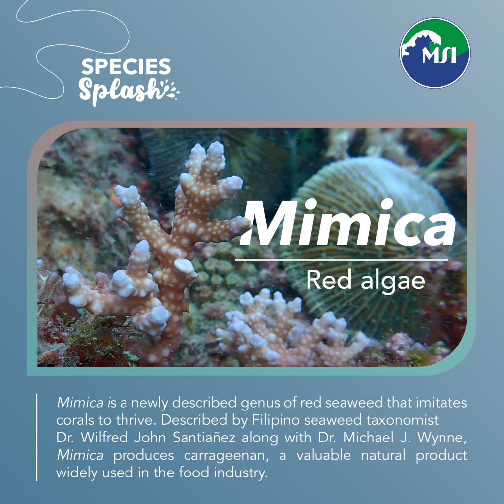 In 2020, Mimica was described by Filipino seaweed taxonomist and UP MSI Assistant Professor Dr. Wilfred John Santiañez, together with Dr. Michael J. Wynne of the University of Michigan Herbarium. It was previously classified under the red seaweed genus Eucheuma, also known as sea moss or locally called gusó, but thanks to recent advancements in molecular studies, Mimica has been recognized as a new, distinct genus.