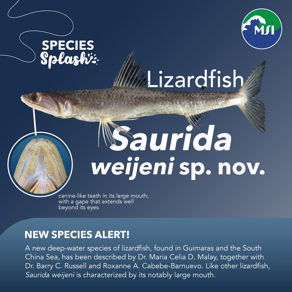 From the deep waters of Guimaras Island in the Western Visayas region of the Philippines and the North Macclesfield Bank in the South China Sea comes a discovery: Saurida weijeni sp. nov., a newly described species belonging to the family Synodontidae and genus Saurida.